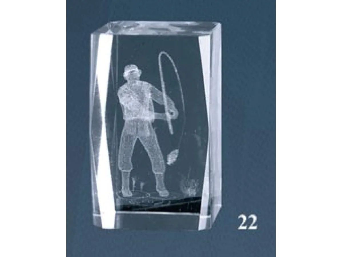 Kristall-Trophäe in 3D gemacht represantando einen Fischer. In verschiedenen Größen erhältlich.