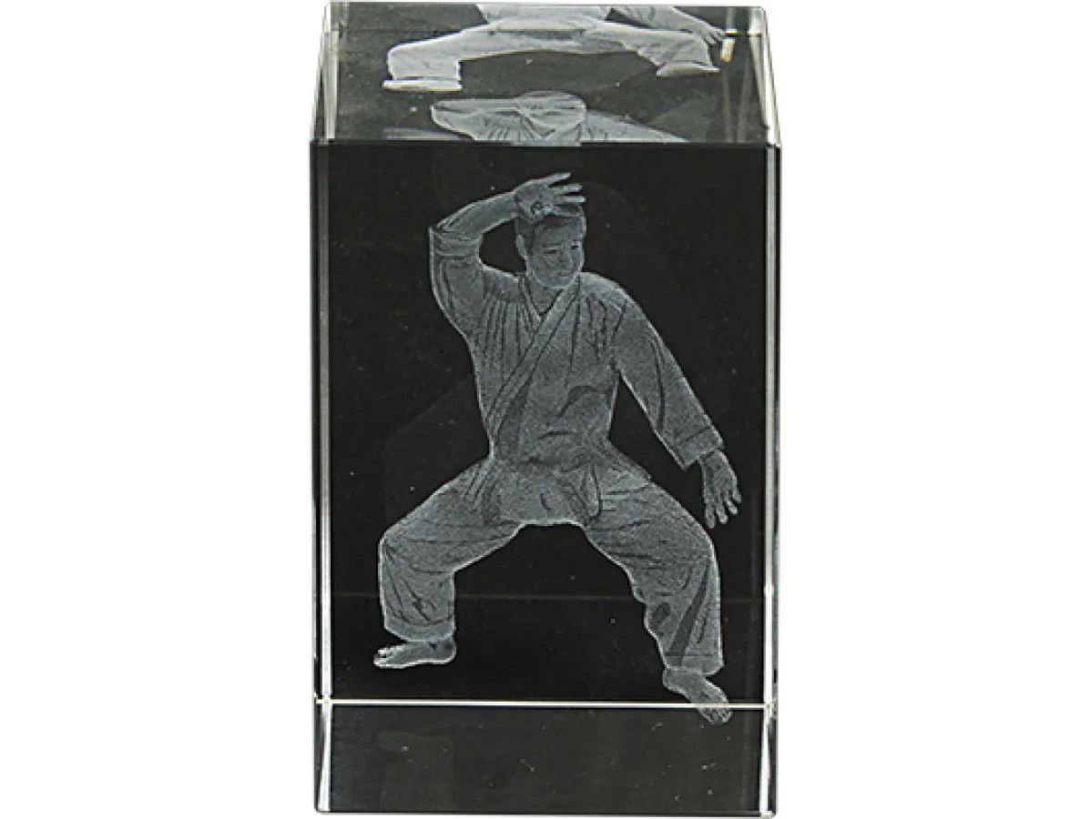 Kristall-Trophäe in 3D gemacht represantando Karate . Erhältlich in verschiedenen Größen .