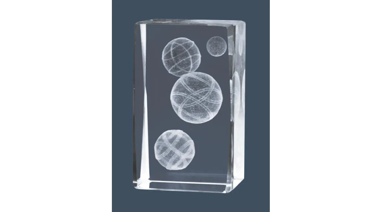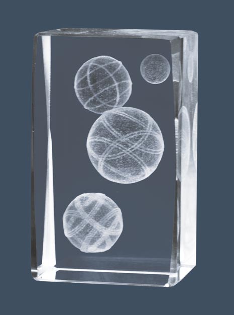 Kristall-Trophäe in 3D gemacht represantando eine Boccia Kugeln . Erhältlich in verschiedenen Größen .
