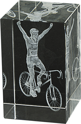 Kristall-Trophäe in 3D gemacht represantando ein Radfahrers . Erhältlich in verschiedenen Größen .