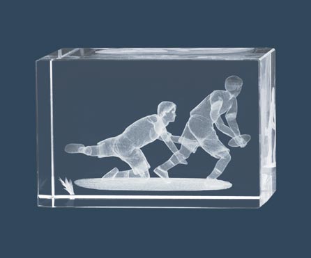 Kristall-Trophäe in 3D gemacht represantando einige Rugby-Spieler. In verschiedenen Größen erhältlich.
