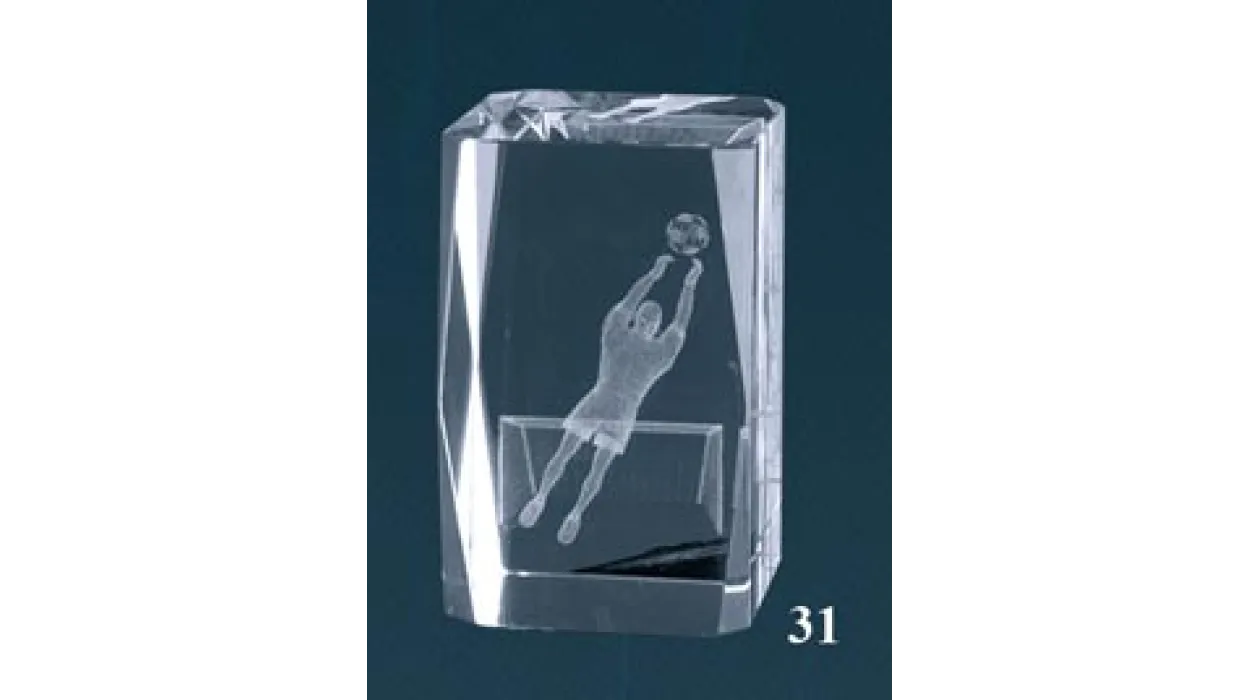 Kristall-Trophäe in 3D gemacht represantando einen Fußball-Torwart. In verschiedenen Größen erhältlich.