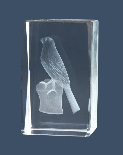 Kristall-Trophäe in 3D gemacht represantando einen Vogel. In verschiedenen Größen erhältlich.