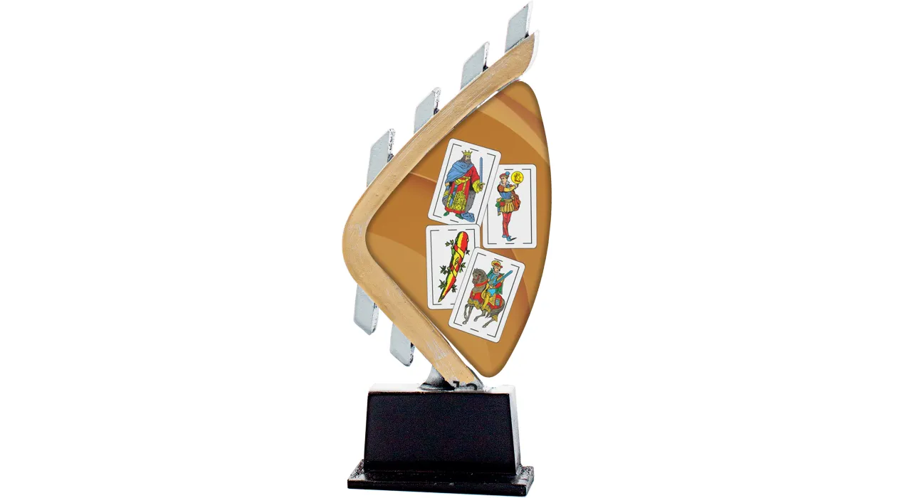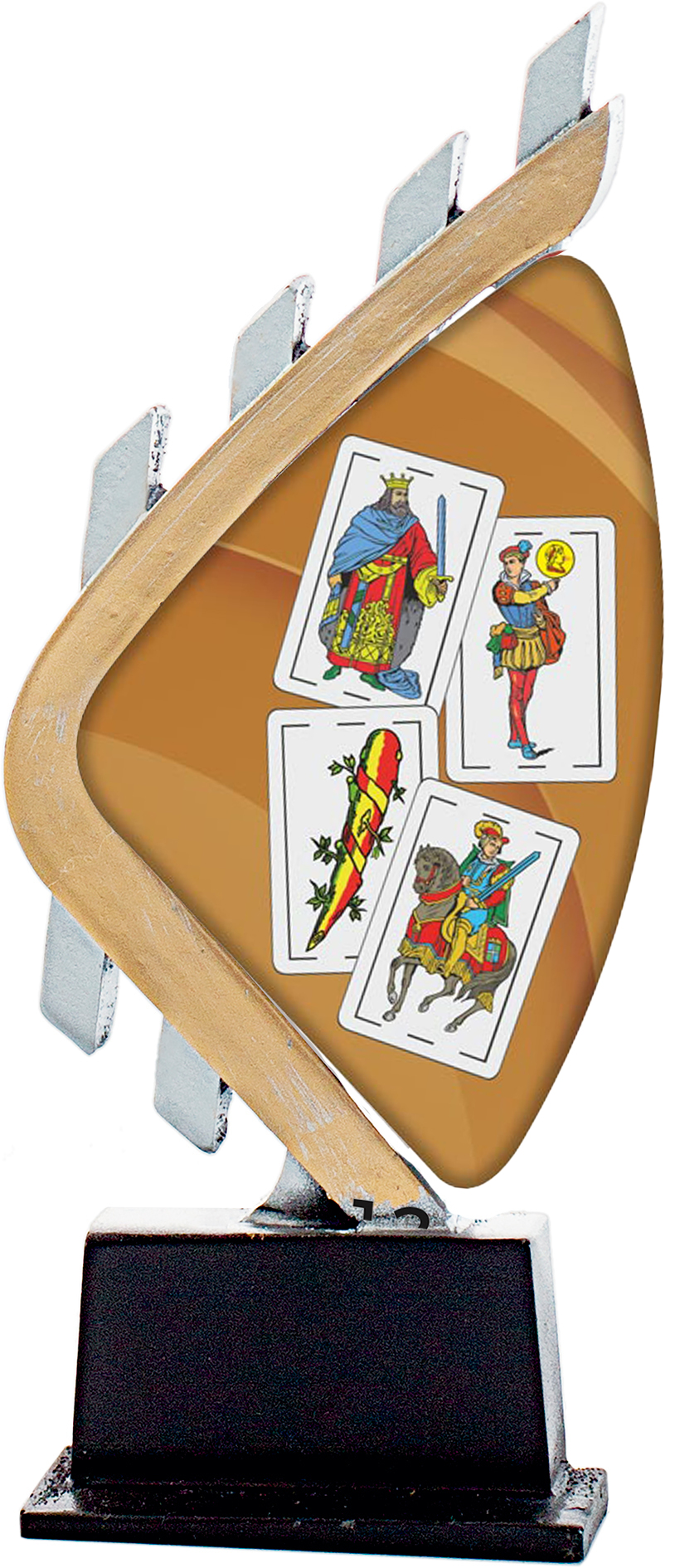 Herausforderung aus einem Harz hergestellt, bestehend aus zwei Flammen und eine dargestellt zentrale eine Hand der Karten gelten. Alle von ihnen in Kohló; Gold-Silber. MaBasis Marmors. Erhältlich mehrere Maßnahmen.