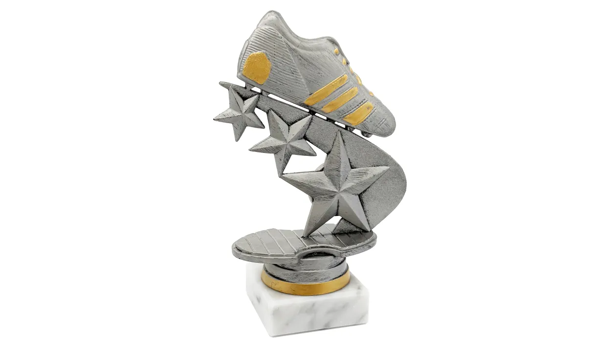 Trophy stiefelförmigen und baló; n f SOCCER mit Unterstützung Mondsichel Harz und Gold-Silber-Tönen. TUNIKA Maßnahme 13 cm .