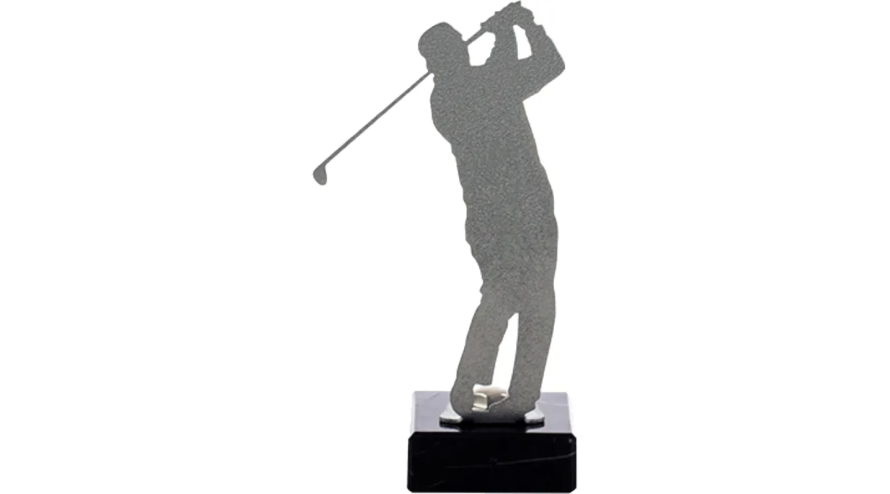 Trophy aus Metall mit der Figur eines Golfers. Marmorsockel. Erhältlich mehrere Maßnahmen.