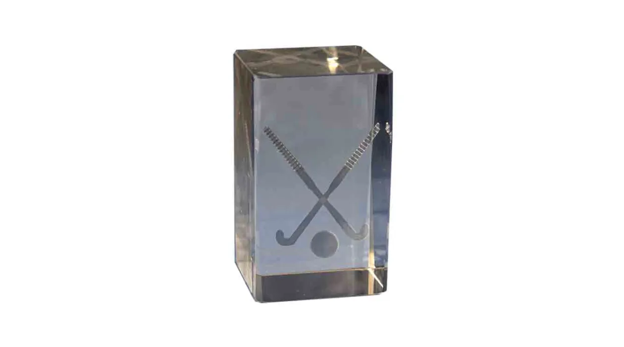 Kristall-Trophäe in 3D gemacht represantando zwei Stöcke Hockey. In verschiedenen Größen erhältlich.