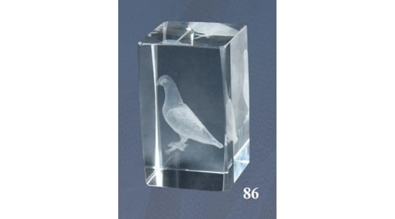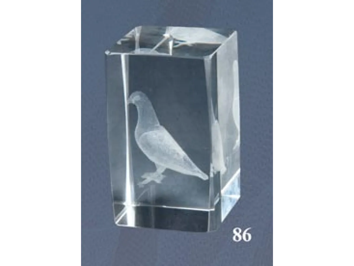 Kristall-Trophäe in 3D gemacht represantando eine Taube. In verschiedenen Größen erhältlich.