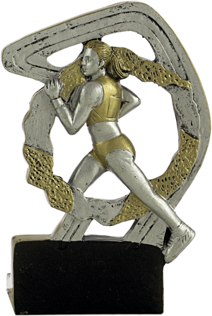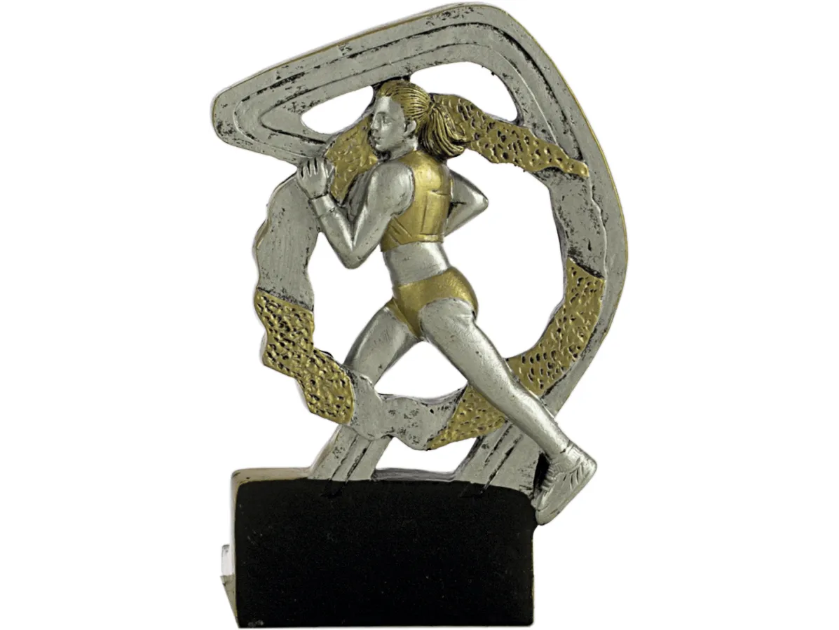 Resin-Trophäe in Gold- und Silbertönen, speziell entwickelt, um Cross- oder Runing-Events zu belohnen. Nur ein Maß von ca. 12 cm.