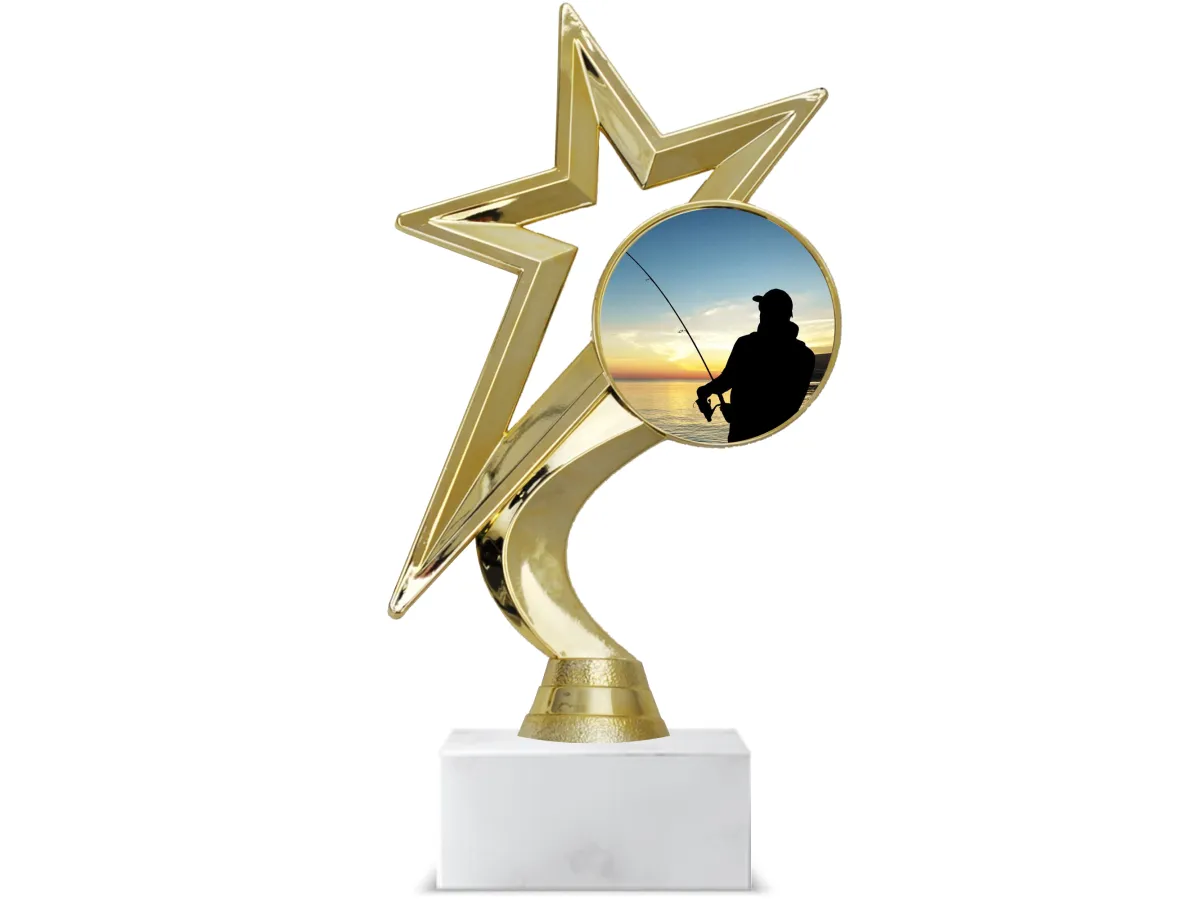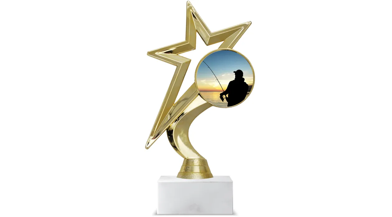 Diese Fishing-Star-Trophäe ist perfekt, um den besten Spieler Ihres Teams zu belohnen. Mit einem einzigartigen Design, das die Silhouette eines Fischers zeigt, ist diese Trophäe ideal für die Anerkennung von Einsatz und Hingabe auf dem Spielfeld. Geben Sie Ihrem Spieler mit dieser besonderen Trophäe das Gefühl, ein echter Star zu sein! Hergestellt aus ABS und Marmor.