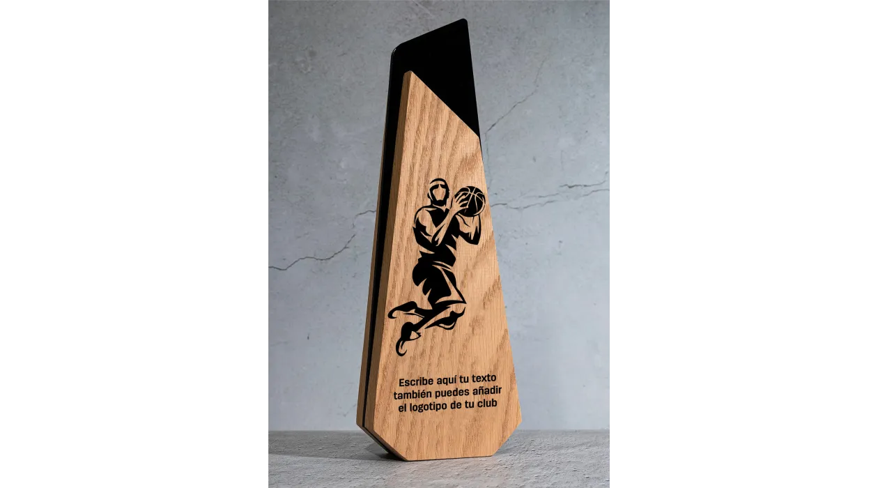 Feiern Sie sportliche Erfolge auf dem Basketballfeld mit dieser personalisierten Trophäe aus Holz und Acryl, die speziell für Basketballturniere, Meisterschaften und Events entworfen wurde. Ihr modernes, geometrisches Design vereint die warme Haptik von Naturholz mit der Eleganz von schwarzem Acryl und schafft so eine anspruchsvolle, langlebige und optisch beeindruckende Auszeichnung.