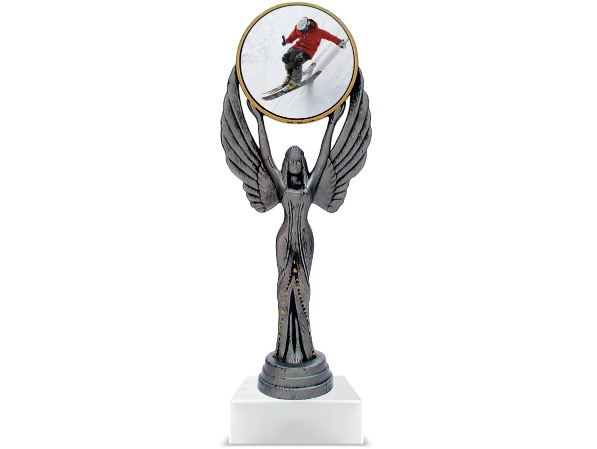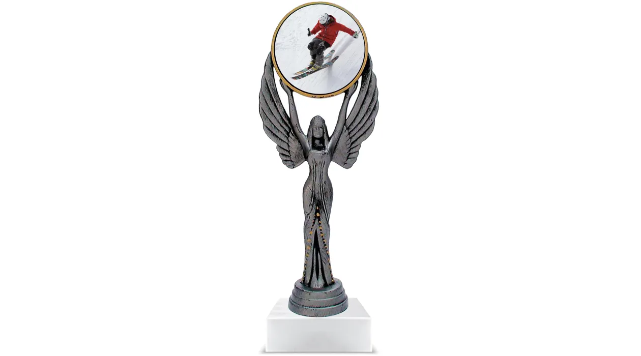 Die individuell gestaltete Skitrophäe aus Kunstharz ist die ideale Wahl für die Auszeichnung von Turniersiegern und die Würdigung von Leistungen bei Sport-, Schul- oder Firmenveranstaltungen aller Art. Dank ihres detailreichen Designs und der Vielseitigkeit des Materials ermöglicht diese Trophäenart die Gestaltung origineller und auffälliger Auszeichnungen, die bei jeder Preisverleihung Eindruck machen.