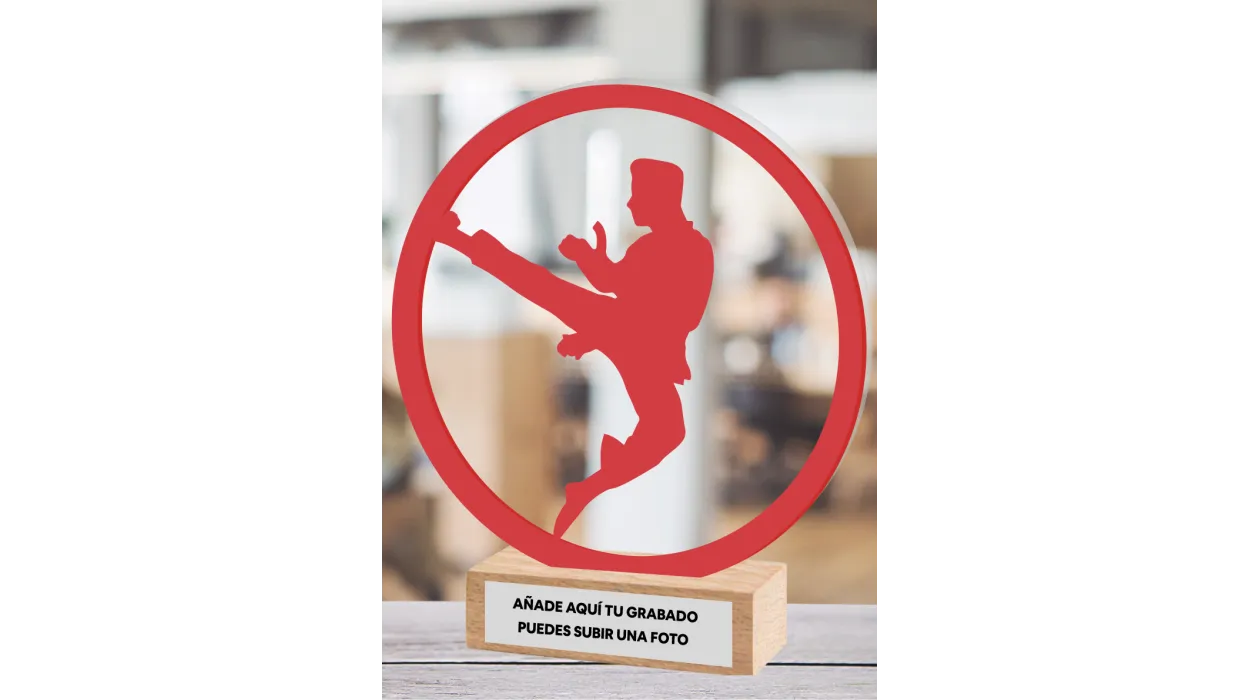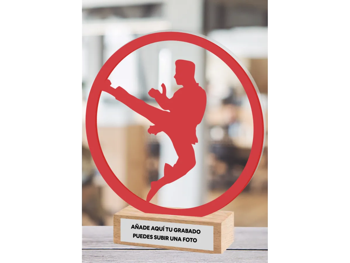 Karate-Trophäe aus Methacrylat und Holz