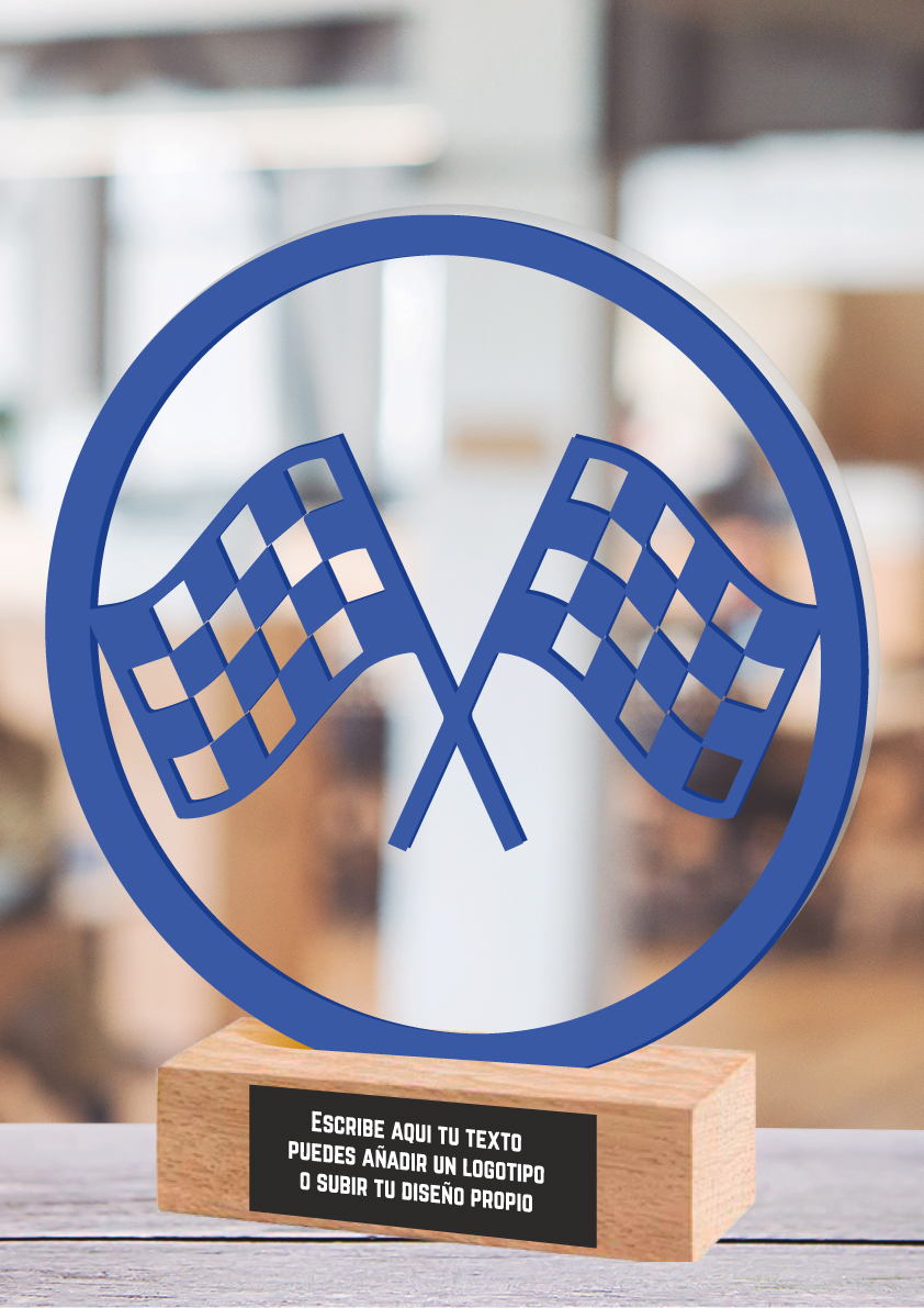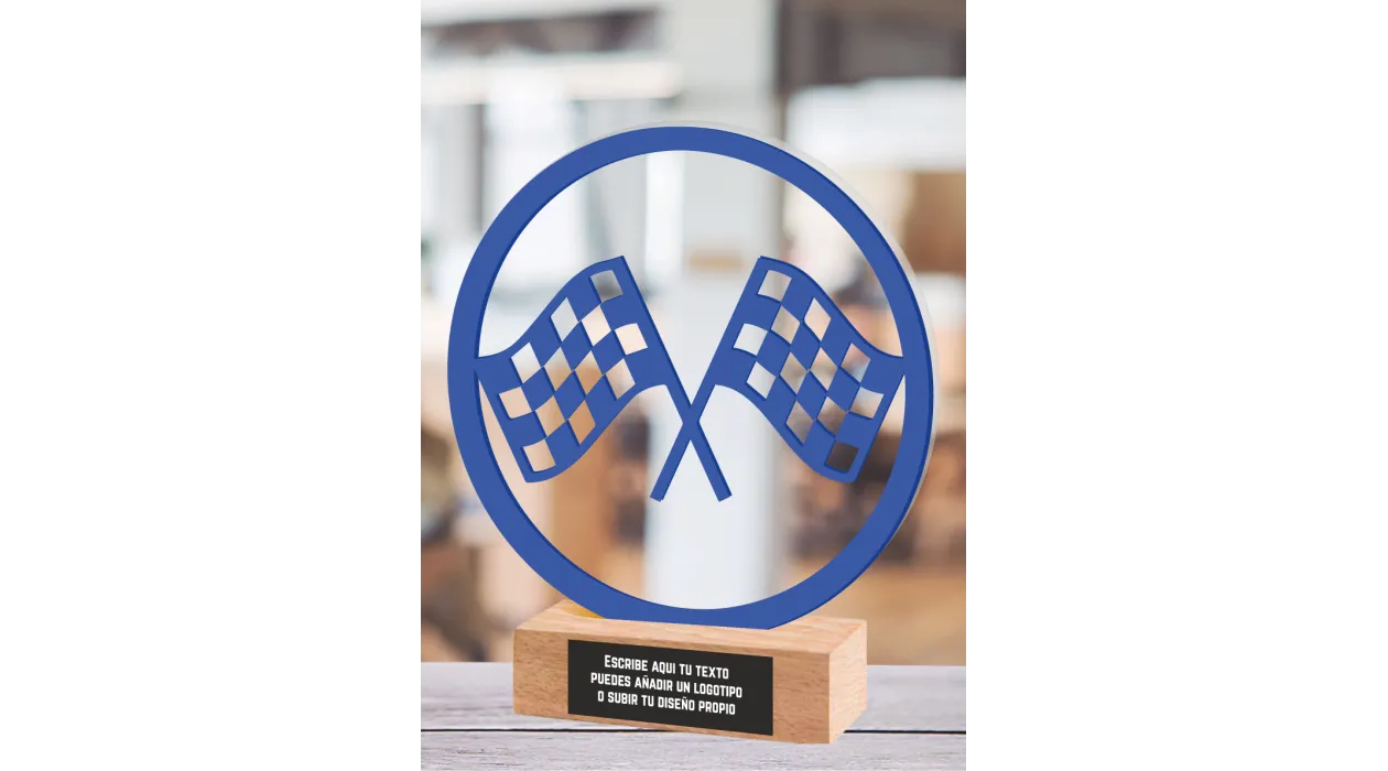 Renntrophäe aus Methacrylat und Holz
