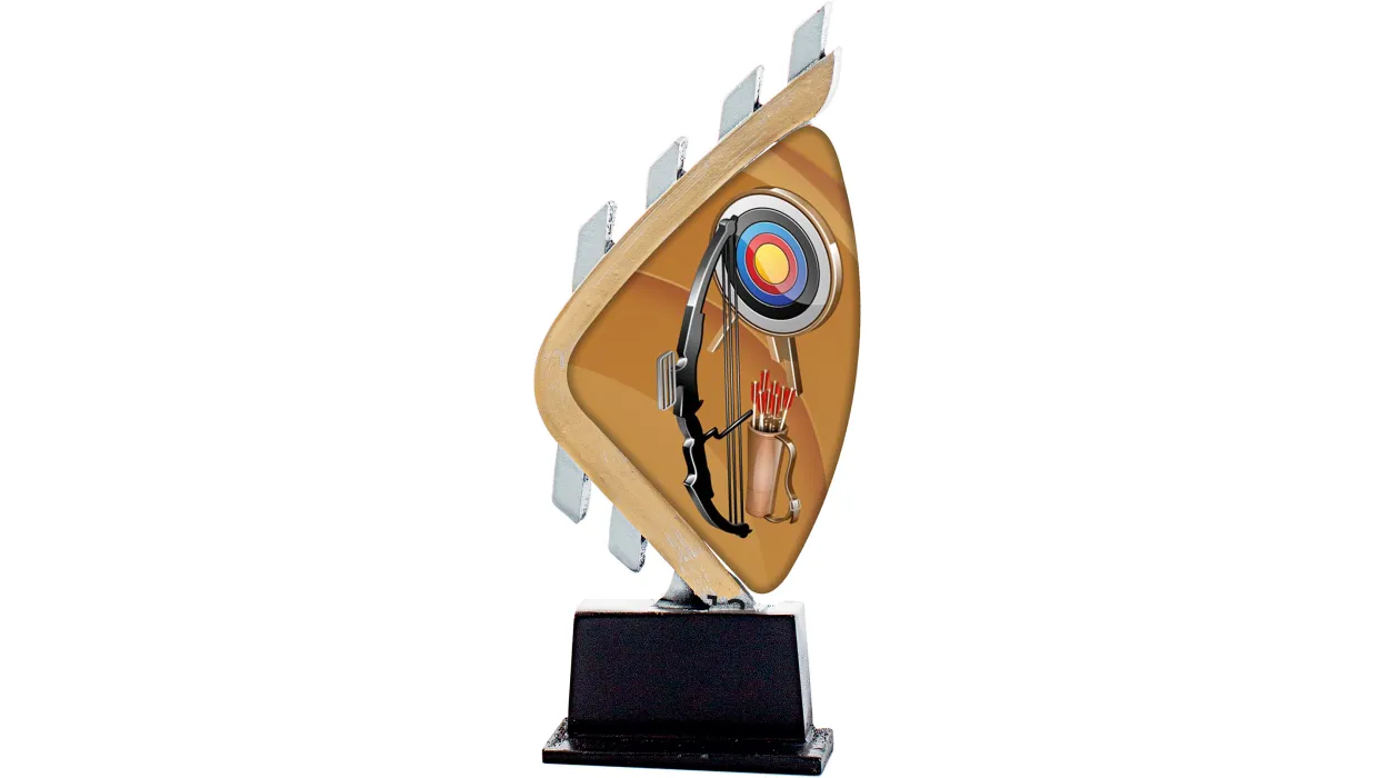 Trophy Figur ein Shooter darstellt, von Harz in den Farben Gold und Bronze. Holzbasis. Erhältlich mehrere Maßnahmen.