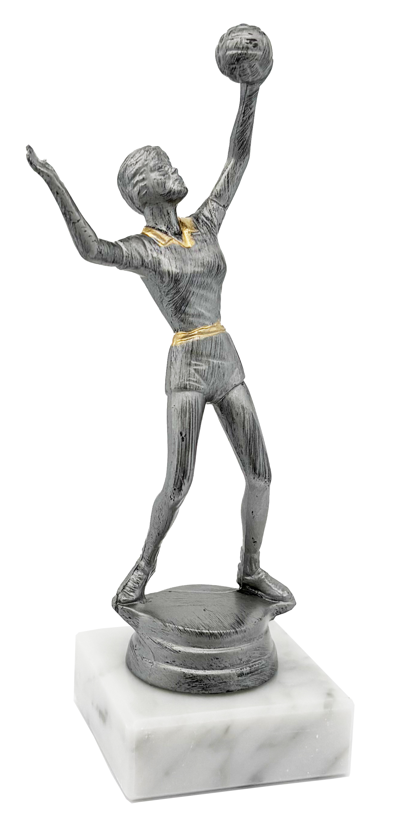 Frauen-Volleyball-Trophäe mit der Silhouette einer Spielerin. An der Basis wird eine Platte mit dem von Ihnen gewünschten personalisierten Text angebracht.