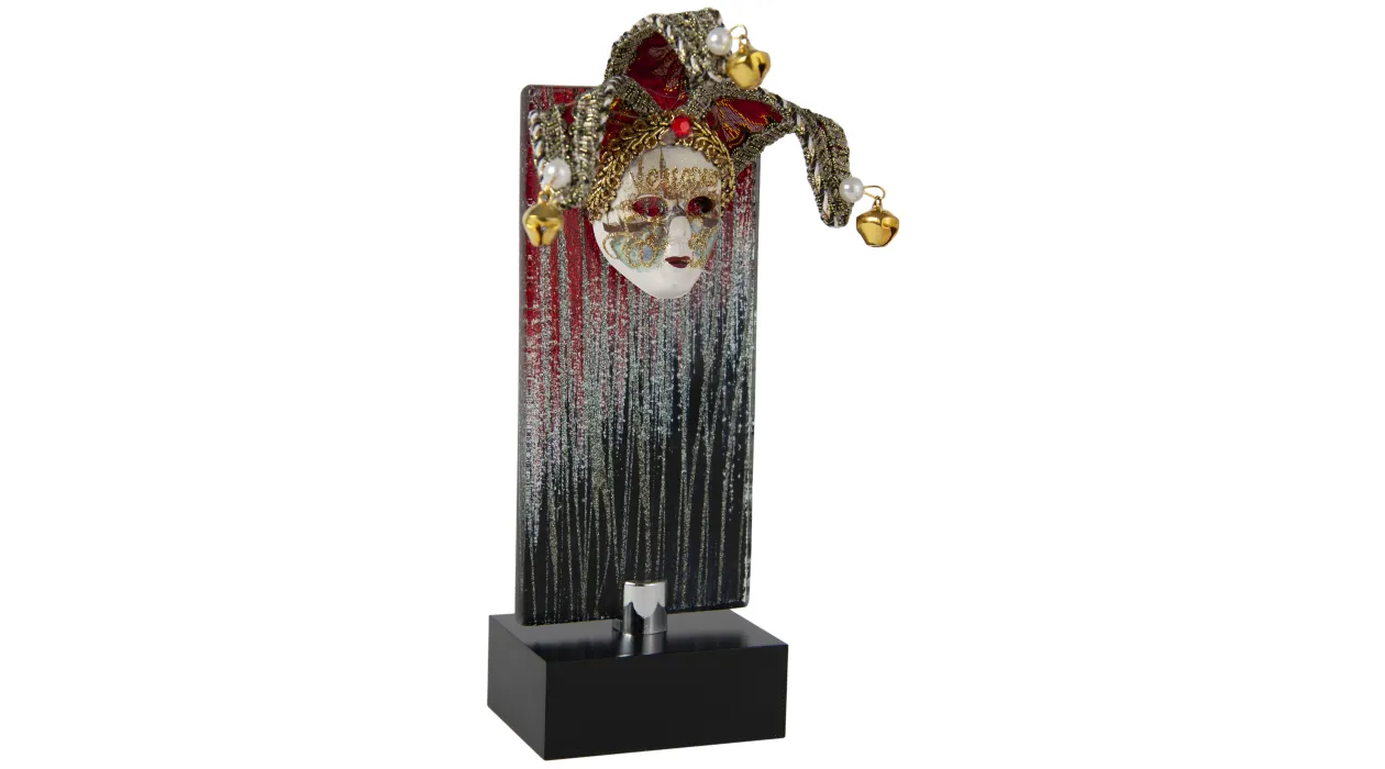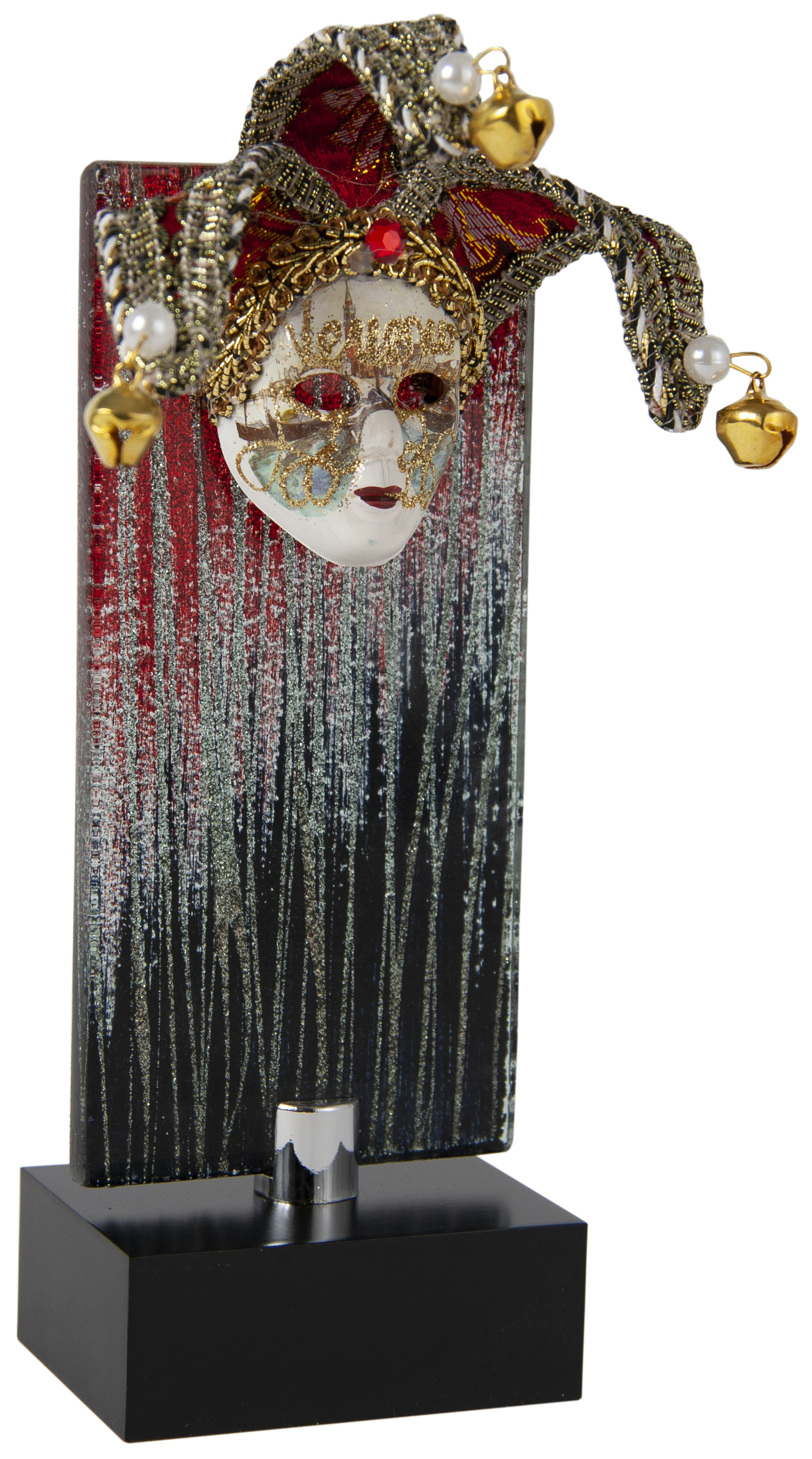 Trophäenträger Glas Multicolor Rainbow Finish Dicke: 5 mm. Zweiteilige Dekoration. Maske und Maske. Keramik und PVC dekoriert. (verschiedene Farben)