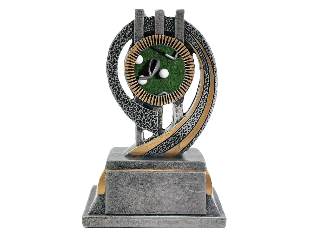 Diese Golftrophäe aus Kunstharz ist das perfekte Geschenk für jeden Liebhaber dieses Sports. Mit einem eleganten und detaillierten Design verfügt diese Trophäe über einen Golfball und einen grünen Ball und eignet sich daher ideal zur Auszeichnung von Gewinnern von Golfturnieren oder -wettbewerben. Die Qualität des bei der Herstellung dieser Trophäe verwendeten Harzes garantiert ihre Haltbarkeit und Widerstandsfähigkeit bleibt lange in einwandfreiem Zustand. Darüber hinaus verleiht ihm seine glänzende Oberfläche einen Hauch von Raffinesse, der ihn von anderen Golftrophäen abhebt. Ganz gleich, ob Sie einen Golf-Champion belohnen oder einen Trophäenraum schmücken, diese Golftrophäe aus Kunstharz ist eine ausgezeichnete Wahl. Sein einzigartiges Design und seine hervorragende Qualität machen es zu einem unverzichtbaren Teil für jeden Golffan.