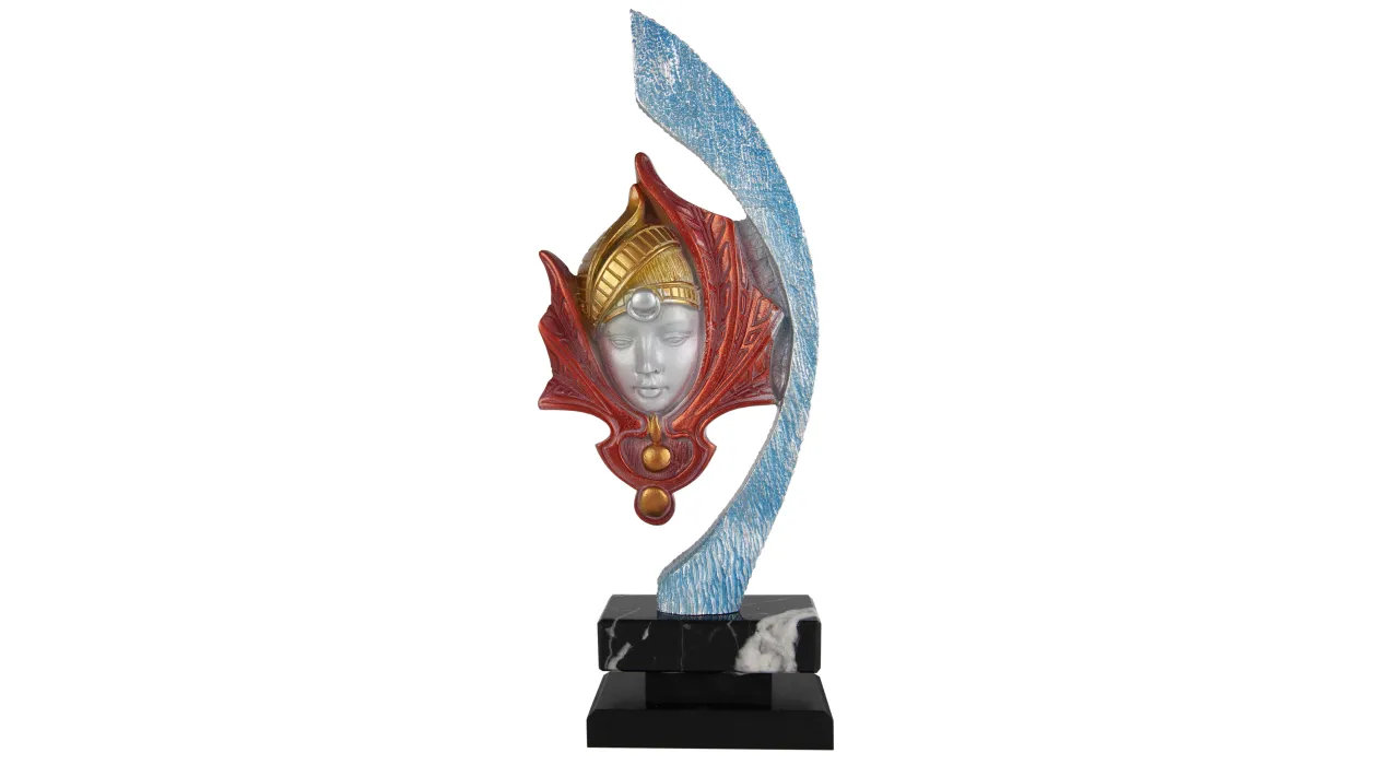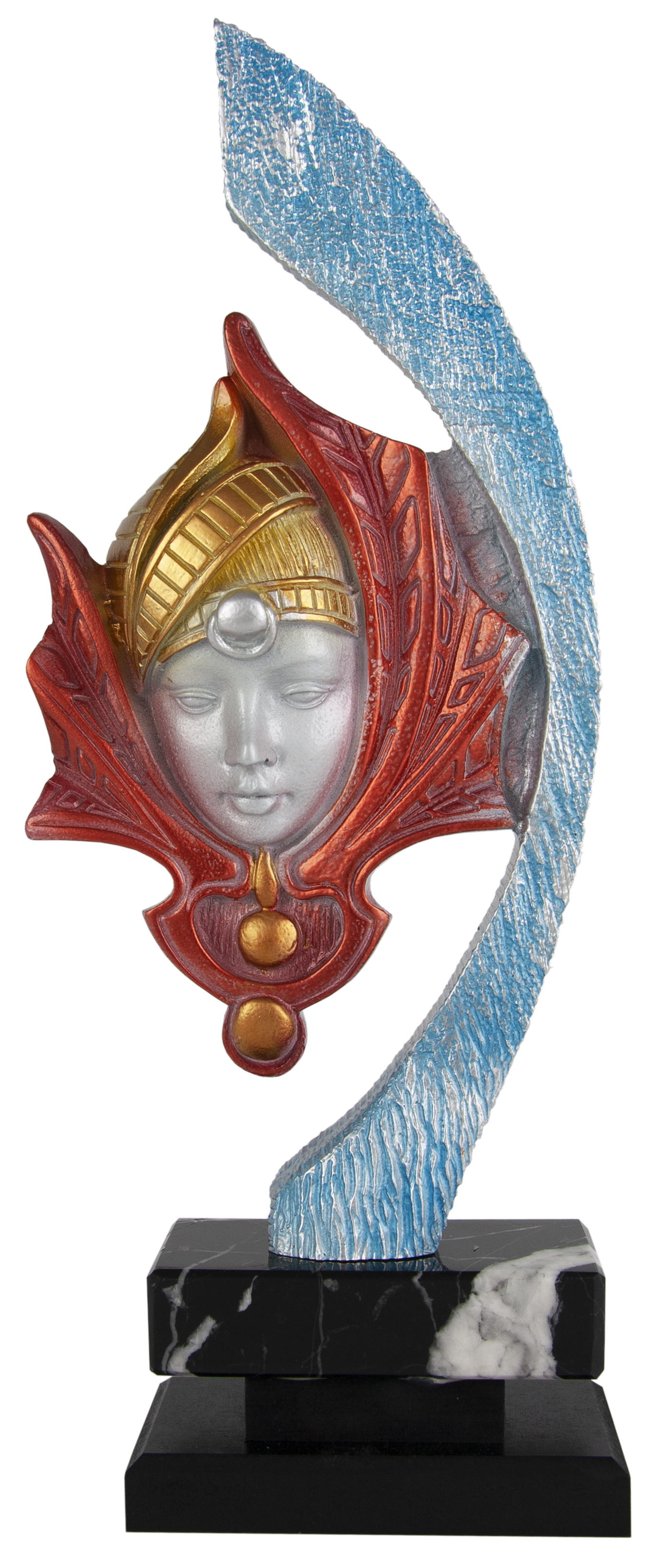 Trophy mit Metallstruktur und tragen Sie eine m Zentrum MASK Rätsela; Glimmer förmige Blüte. MaBasis Marmors. Erhältlich mehrere Maßnahmen.