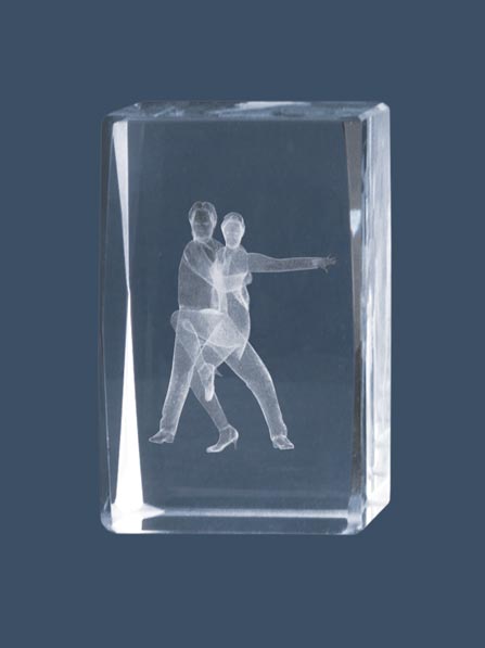 Kristall-Trophäe in 3D gemacht represantando zu einem Paar tanzt Tango. In verschiedenen Größen erhältlich.